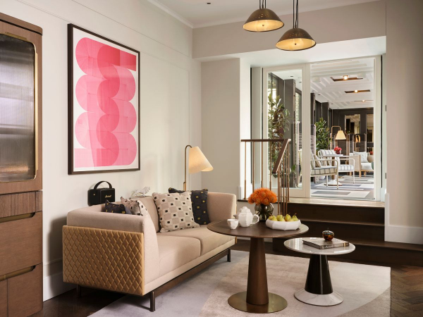 The interiors of Rosewood Munich are characterised by a finely balanced combination of historical heritage, contemporary materials, and bespoke individual details. The building complex includes a lobby, the Brasserie Cuvilliés, Bar Montez, several conference and event rooms including two ballrooms, as well as 73 rooms and 54 suites spread across five sections of the ensemble – all equipped with custom-made furniture, high-quality materials, and curated art, surrounded by individual interior design that showcases every element to great effect.